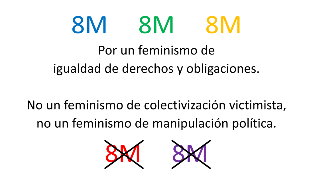 Si el machismo consiste en establecer un prejuicio separador (hombre-mujer) y asociarle una relación manipuladora, de dominio o precedencia; la respuesta razonable será desmontar el prejuicio y combatir la manipulación. Hasta ahí creo que nos podríamos encontrar casi todos, en una especie de feminismo liberal, liberador de prejuicios. Pero, como siempre ocurre, hay quienes prefieren … Sigue leyendo Feminismo ¿liberador o frentista?