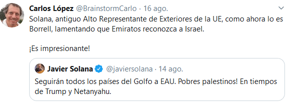 Así que ¡bien por Trump! Ojalá salga reelegido y pueda seguir avanzando también en Cuba-Venezuela. Sin esperar el apoyo de la UE, que tampoco ahí lo dará.