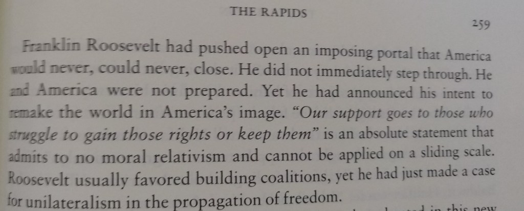 This time the US set a new world rule, based on American values. The world wide defense of the four freedoms: speech, faith, prosperity and security.