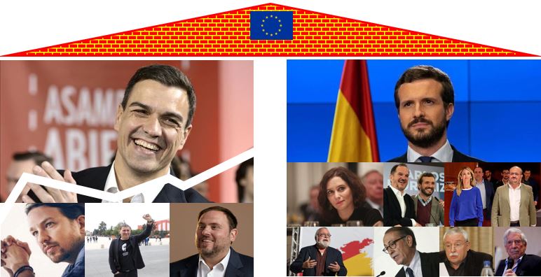 El PP busca la protección de la infame Merkel y el deplorable Macron y VoX reivindica el orgullo del ser español, que para algo hemos hecho la mayor gesta de la Humanidad descubriendo y cristianizando América. Eso, es diferencial. Con humildad, pero con orgullo y a defender España y si hace falta oponerse y ser “antipático” y hacer de “malo de la película” y que te llamen “facha”, pues qué se le va a hacer.