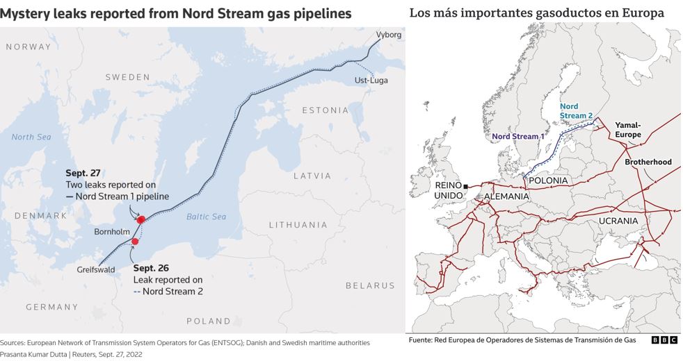 - Quedaría entonces una única incógnita: ¿Qué bazas le quedan Putin después del sabotaje? ¿Cuál es la advertencia a Alemania? Una vez perdida la baza de la dependencia energética parece difícil entender qué le queda. Así que solo se me ocurre una, la amenaza de destapar los trapos sucios de la entente entre Alemania y Rusia, que imagino son muchos muchos. Es decir, el sabotaje sería una manera de avisar a Alemania que está dispuesto a morir matando. Que está dispuesto a tomar decisiones que perjudiquen a ambos si Alemania no le ayuda (por ejemplo, ayudando en la anexión de territorio ucraniano tras los referendums trampa). Una jugada desesperada.