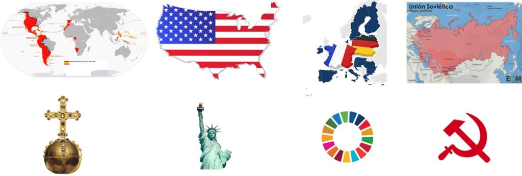 El Imperio Español apoyó su crecimiento en la promoción de la religión católica. Un gran ideal que calentaba los corazones de los propios y ganaba adeptos entre ajenos. EE.UU. en la expansión de la libertad. Y la URSS en el fervor de la lucha de clases y los ideales socialistas. No hay imperio sin su ideal, su religión imperial.
