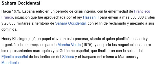 - 1975 Franco fallece, Juan Carlos I es nombrado rey e inicia la Transición y Marruecos invade el Sáhara sin que España defienda su territorio (Marcha Verde).